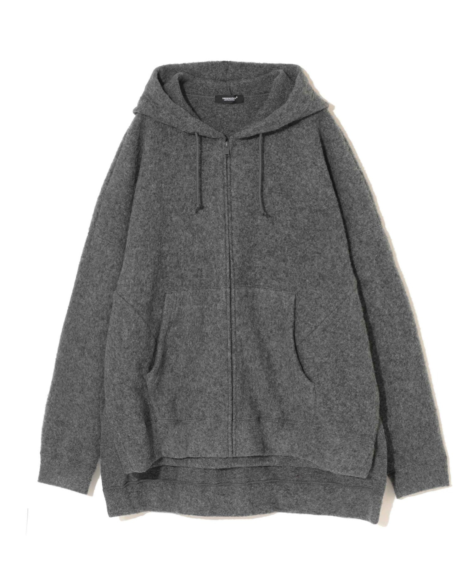 - Cashmere-blend wool pile zip-up hoodie - Long back design MATERIAL PILE: 90% WOOL, 10% CASHMERE GROUND: 100% POLYESTER
