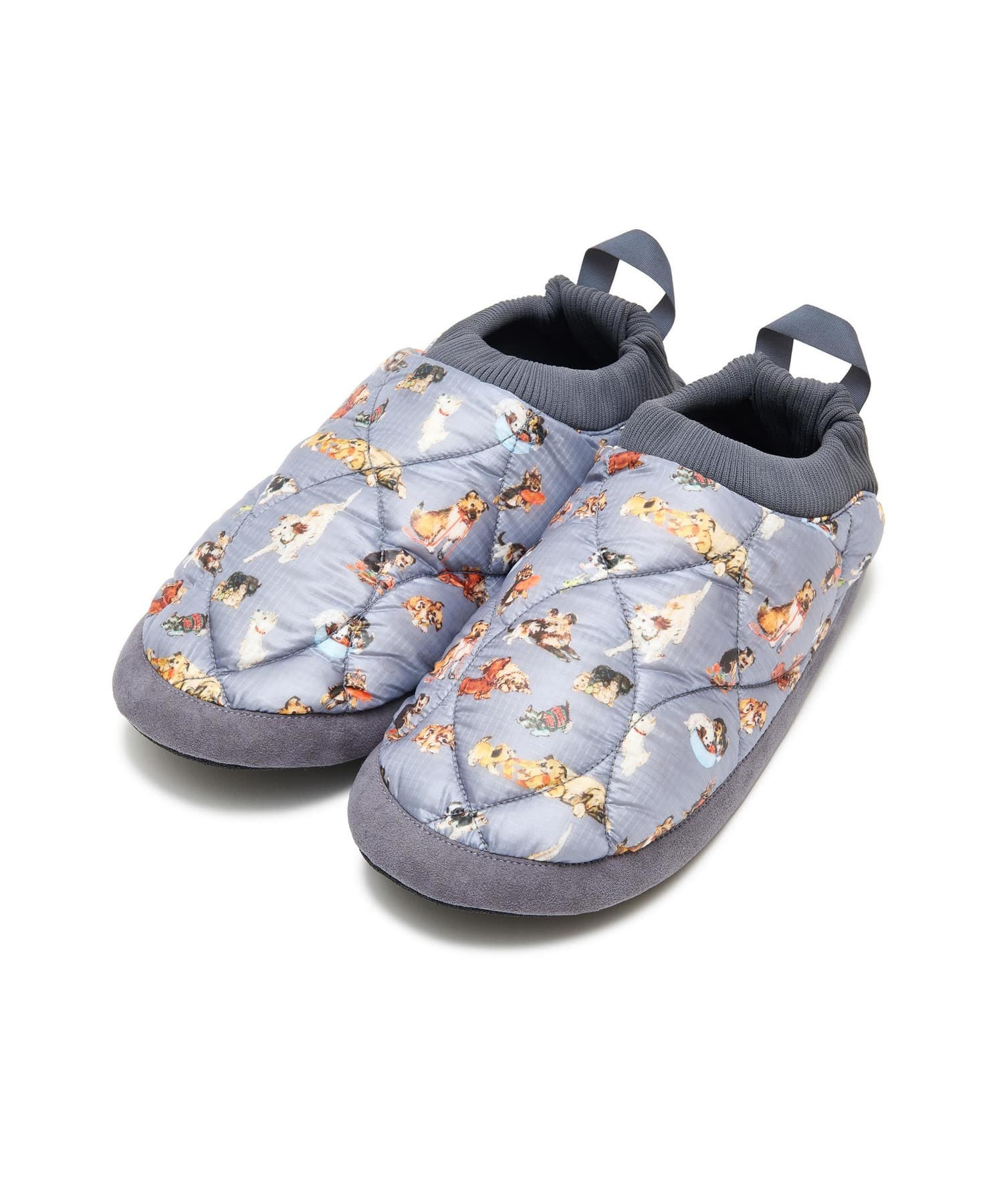 -Dog print down room shoes -Elasticated opening -Synthetic leather and rubber sole MATERIAL UPPER: 100% POLYESTER FILLING: 90% DOWN, 10% FEATHER PARTLY: SYNTHETIC LEATHER SOLE: SYNTHETIC RUBBER