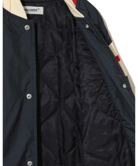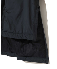 -Polyester padded long jacket -Ribbed paneling -Short front length -Front welt pockets -Embroidered graphics on front and back -Cupro lining MATERIAL 100% POLYESTER FILLING: 100% POLYESTER LINNING: 100% CUPRO RIB: 50% COTTON, 50% POLYESTER