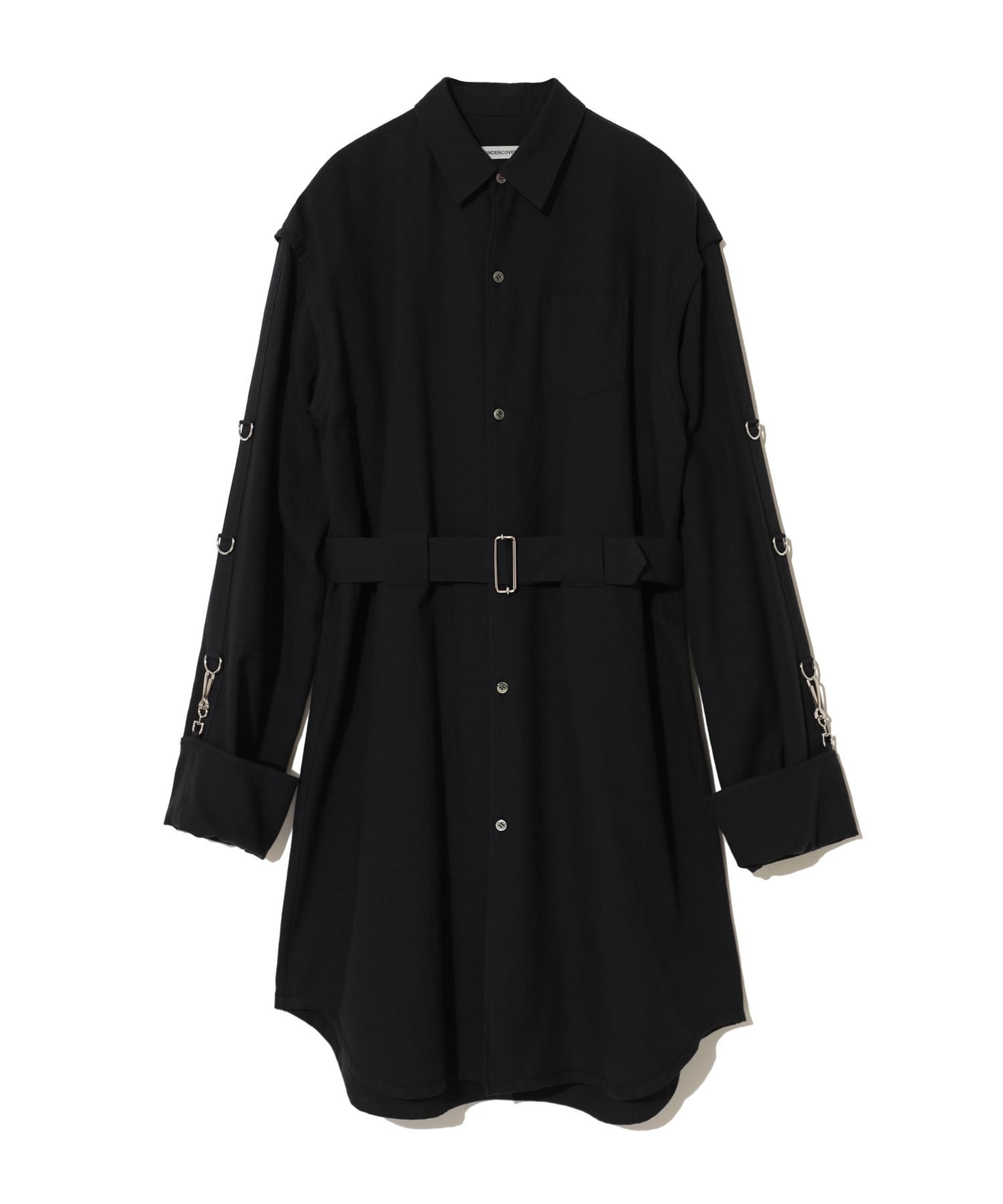 -Cashmere-cotton long shirt -Belt at waist -Viyella belt and adjuster clips at sides MATERIAL 95% COTTON, 5% CASHMERE