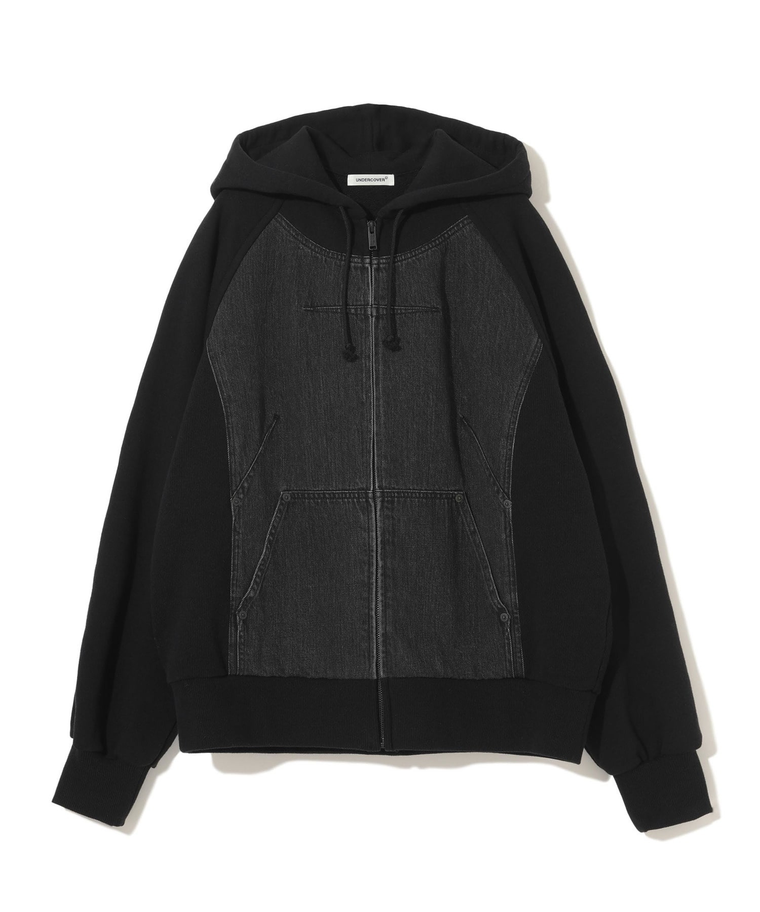-Processed denim and cotton sweatshirt hoodie -Front patch pocket MATERIAL 100% COTTON PARTLY: 100% COTTON RIB: 95% COTTON, 5% POLYURETHANE