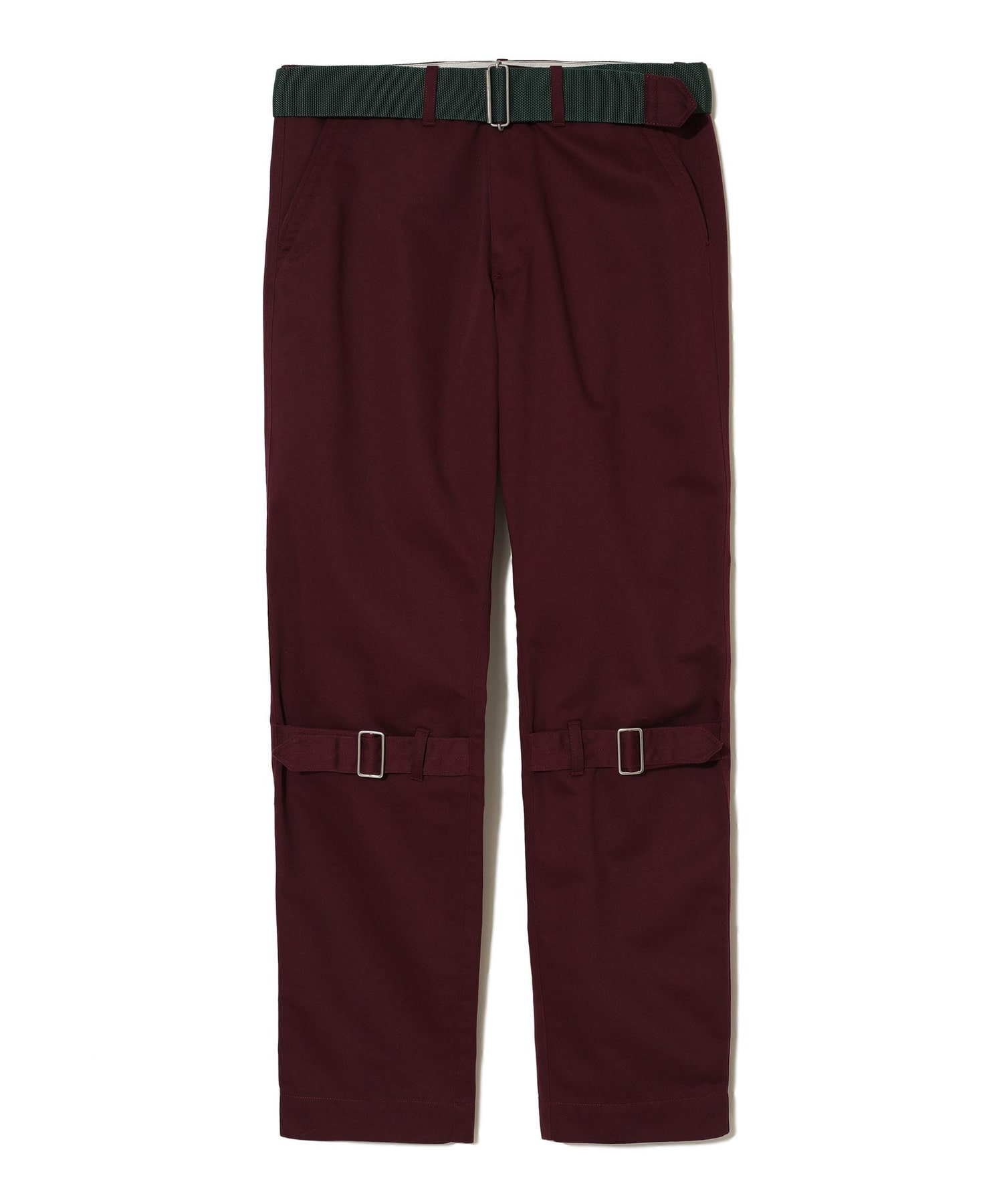 -Polyester strap pants -Twill belt -3D pockets on the back MATERIAL 65% POLYESTER, 35% COTTON