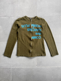 Comme des Garcons Homme Plus AD2001 Split Logo Cardigan Size (tagged): NA, Size on tag has worn off please refer to the measurements provided Condition: Used, minor pilling throughout, and a small hole has been repaired on the front of the garment. Please refer to the pictures provided to make an accurate assessment of the garment's condition. ** Note item is in used/vintage condition. There may be fading, blemishes, tears and holes present. Please refer to photos and measurements before making your purchase decision. No refunds or returns. @uniformaffair