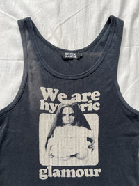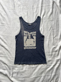 Hysteric Glamour 'We are Hysteric Glamour' Cotton Tank Size (tagged): Free, (fits M-L, refer to measurements) Condition: Used, noticeable sun fading and general wear throughout. ** Note item is in used/vintage condition. There may be fading, blemishes, tears and holes present. Please refer to photos and measurements before making your purchase decision. No refunds or returns.