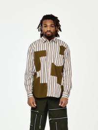 Pattern and precision collide. This button-up shirt reworks classic shirting with a CDG lens, combining white, brown, and khaki tones into an unexpected palette. Sharp yet offbeat, it’s a standout piece for pushing everyday style forward. SKU: PP-B007-W25
