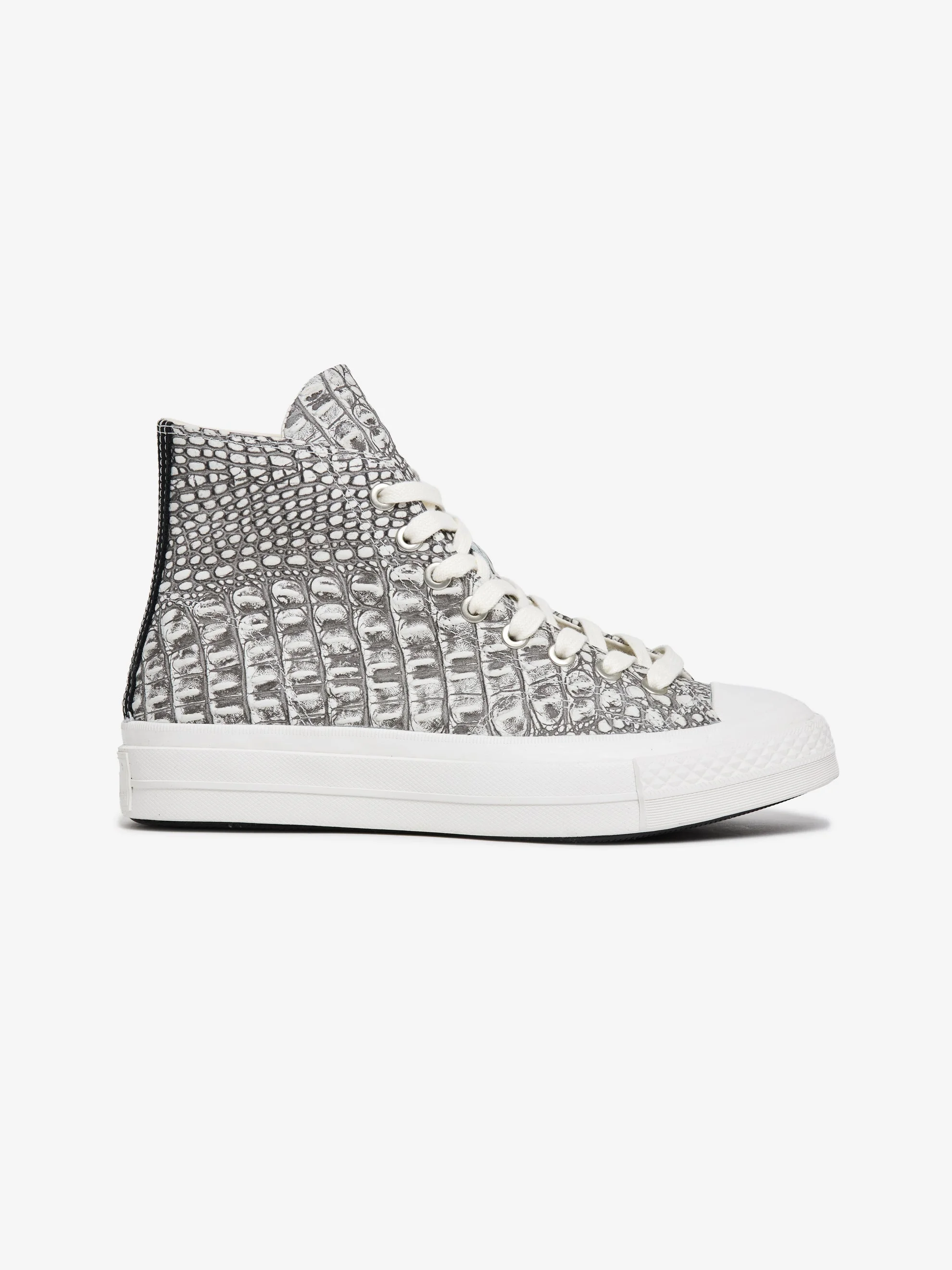 Note: Fits a full size large. We recommend sizing down from your usual Chuck 70 size. The Converse First String Chuck Taylor elevates the classic silhouette through premium material execution. A croc-embossed leather upper adds texture to the clean white build, while a Vibram sole enhances durability and traction underfoot. Heritage Chuck Taylor design meets refined construction in a modern, elevated everyday staple. SKU: A18413C