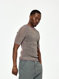 Knit in a soft mauve hue, this sweater leans romantic and slightly eccentric. Ribbed cuffs, relaxed shape, and tonal collar details make it casual but not basic. Feels like poetry in texture. SKU: 251-023018-1304-104