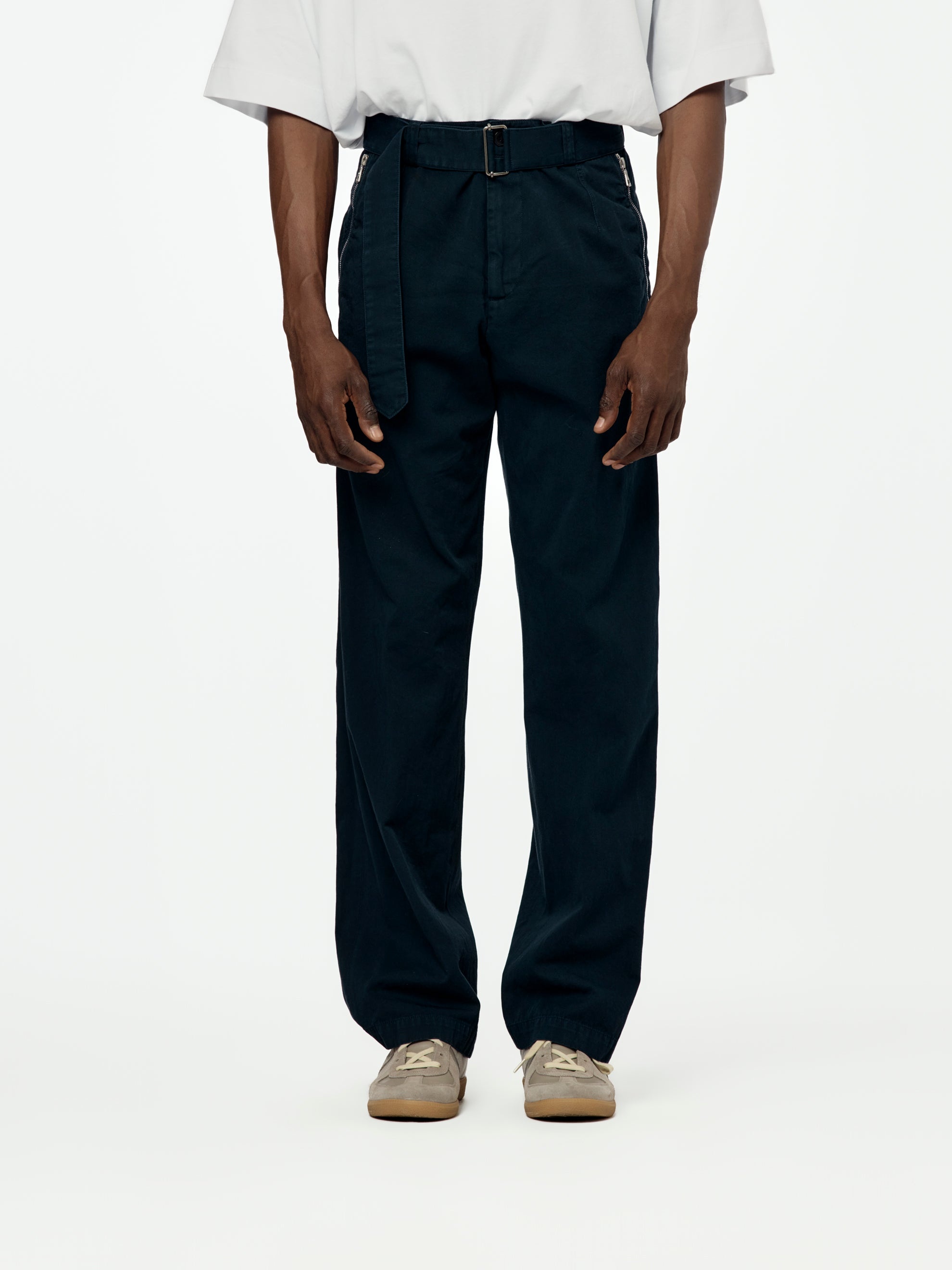 Casual pants Side-seam zip pockets and a coordinating belt perfect the utility style of these pants cut in a straight-leg silhouette from navy-hued gabardine. 100% Polyester Model is 6'0 Wearing a size 48
