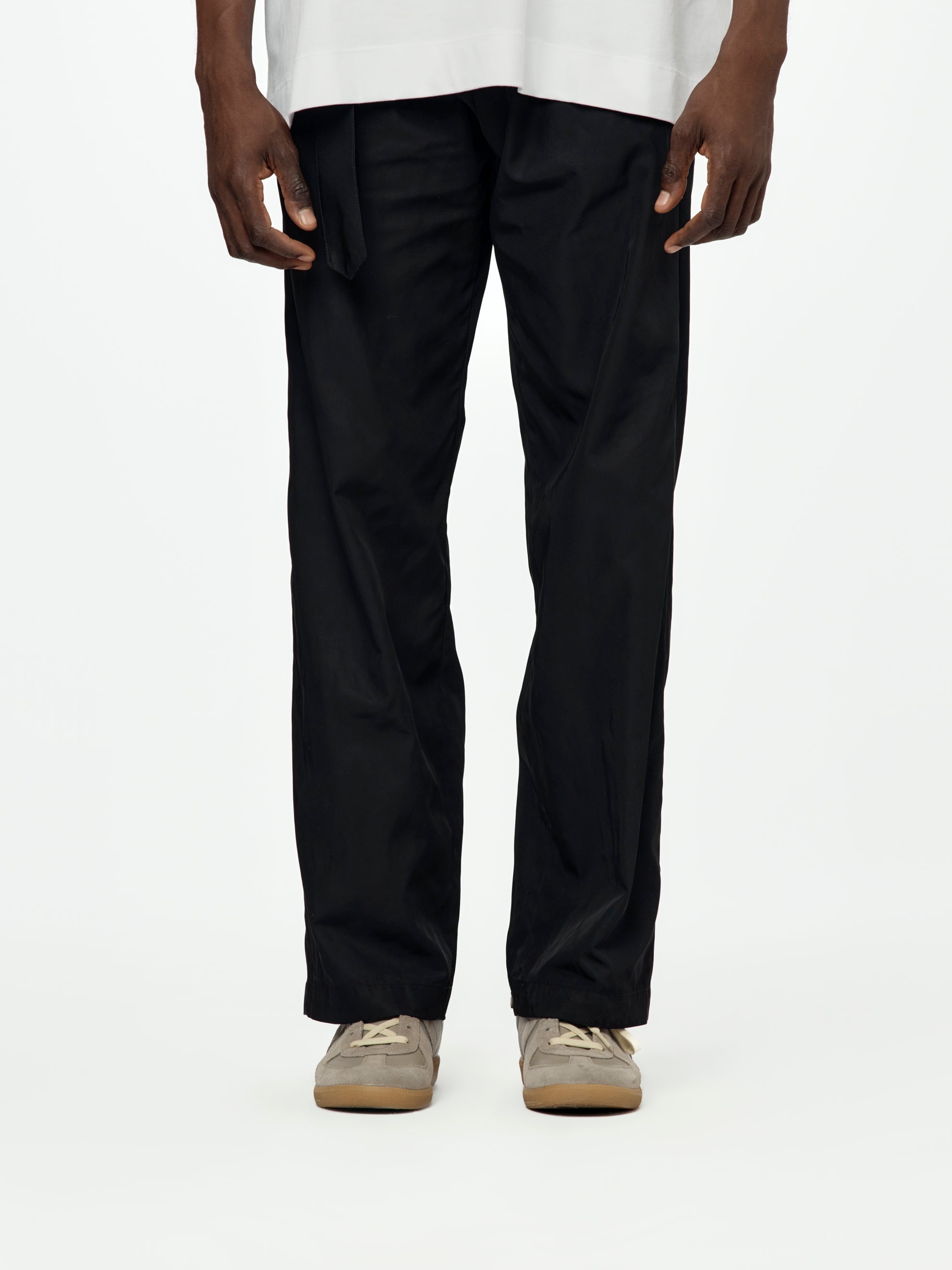 Casual pants Side-seam zip pockets and a coordinating belt perfect the utility style of these pants cut in a straight-leg silhouette from black-hued gabardine. 100% Polyester Model is 6'0 Wearing a size 48