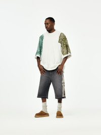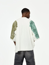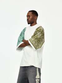 A Kapital staple reworked with playful edge. This oversized tee is cut from a weighty jersey for structure and comfort, then finished with bandana-inspired cookie motifs dropped on both shoulders. It’s big, it’s bold, and it carries that unmistakable Kapital energy. Made in Japan. SKU: EK-1751SC-KHA