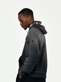 SWT KNIT THRILLER DAMAGED HOODIE (STUDS) (BLACK)