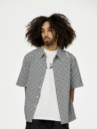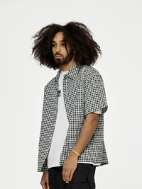 GINGHAM SEERSUCKER SHORT-SLEEVED SHIRT (BLACK)