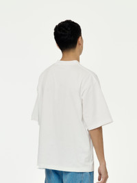 Classic organic cotton T-shirt. This piece is woven with a graphic design and a slight oversized cut. 100% Cotton Model is 5'11 wearing size Large. -Made in Italy