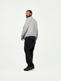 Redefinition of a classic shirt with elastic band detail on the back to create a blouson-like silhouette. Subtle transition between the front and back panel, forming a narrowing outline on the side. Arched line stitches and dart detail on the shoulder enables the shirt to sit naturally on one‘s body, allowing comfort movement. South Korean fabric. Soft touching and stretchable fabric. Model is 6'0 wearing a size L.