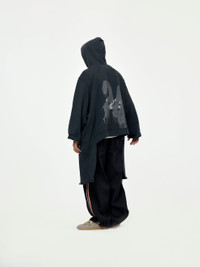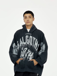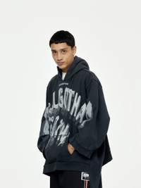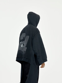 Upgrade your style with the APOCRYPHAL HOODIE. This oversized black hoodie features a comfortable kangaroo pocket and is perfect for staying warm while looking stylish. Rely on its quality material and modern design for a trendy and effortless look.