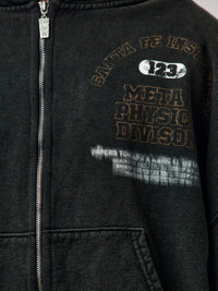 The SF Institute CVA Zip Hoodie blends archival academia with RRR123 futurism. A black, heavyweight zip-up stamped with Institute references and tonal graphics that feel both cryptic and intentional. Smooth metal hardware, structured hood, and a fit built for layering. A uniform piece with real narrative SKU: SFIN-ZP00-BLCK