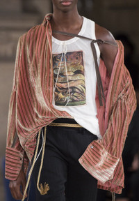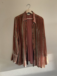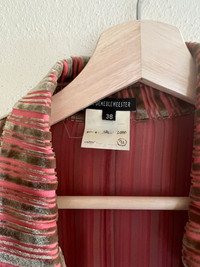 Posting as an interest check; not eager to sell but willing to entertain serious offers. A beautiful shirt from Seb’s FW18 collection for Ann, in a beautiful semi-sheer striped gold and pink velvet. This is a sample piece; due to the circled look number on the sample tag I think this is the piece shown on the runway with the ribbons at the sleeves removed. An insane collectors piece, hence the price. Tagged a 38, fits a mens S. In used condition, with some general wear. Feel free to message me with any questions or an offer. Thank you!