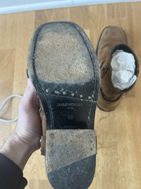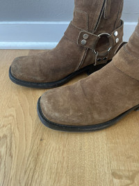 Cowboy/motorcycle style boots from Demna’s FW17 collection for Balenciaga, with harness detailing and a squared off toe. Tagged 40, fit up to 41. In used condition with general wear. Feel free to message me with any questions or an offer. Thank you!