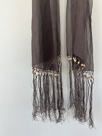 Silk scarf from dries with beaded tassels at each end. In used condition with general wear. Feel free to message me with any questions or an offer. Thank you!
