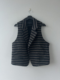 Striped vest from Haider’s most iconic collection, with a concealed snap button closure. Tagged L. In used condition with general wear. Feel free to message me with any questions or an offer. Thank you!