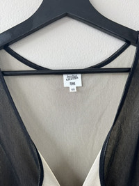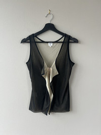 Corset-style tank top from JPG in 2 layers of beige and black sheer fabric. Hook and bar closure at front. Tagged 40. In used condition with general wear. Feel free to message me with any questions or an offer. Thank you!
