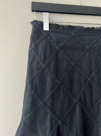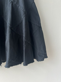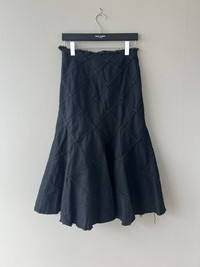 An iconic skirt from one of Junya’s greatest works, composed of diamond-shaped pieces of denim stitched together in the flared shape of a mermaid skirt. This is the rarer black denim version of the skirt, more commonly found in a washed blue denim. Raw hems at the bottom and waistband which leans into the distressed look that characterized the designer’s SS02 collection. Tagged M. In used condition with general wear. Feel free to message me with any questions or an offer. Thank you!