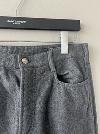 Trousers from Prada in a straight cut in a warm wool flannel fabric. Tagged 44, fit TTS. In used condition with general wear. Feel free to message me with any questions or an offer. Thank you!
