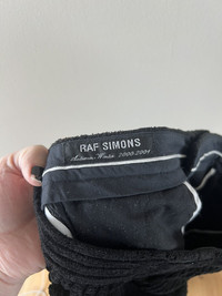 Trousers from Raf’s AW00 collection in a wide, velvety corduroy with asymmetric legs - one leg has a regular straight fit while the other is cut substantially wider. Insane fabric and patterning on these. Tagged a 48, fit TTS. In used condition with general wear. Feel free to message me with any questions or an offer. Thank you!