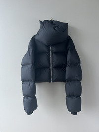 Iconic cropped puffer from Rick from FW21. High cropped body with an exaggerated funnel neck collar that can be worn up to partially cover the face or open hanging downwards asymmetrically. One of the biggest grails from Rick’s recent work. Tagged a women’s size 40, fits like a men’s S. In used condition with general wear. Ships with Rick hanger and plastic packaging. Feel free to message me with any questions or an offer. Thank you!
