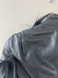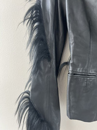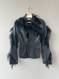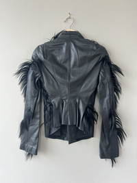 This is the first of two reeditions of the iconic 1990s monkey fur jacket from Rick (the second would come a decade later for Fall 2015 SPHINX). Supposedly only 2 of the original version of the jacket were produced, making this early reiteration of the concept the closest to the original garment any of us are likely to get. This jacket is spectacular, with the frayed fur spiraling down across the upper of the torso and down the skinny, elongated sleeves. The jacket has a double hook and bar closure and slit pockets at the front with a flared hemline at the back of the waist and gathered leather seaming at the shoulders. A true collectors piece. Tagged a 36. In used condition with some wear to the leather. I have no idea how to go about pricing this piece. Please message me with any serious offers. Thank you!