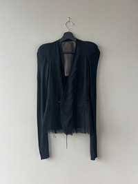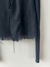 An incredible jacket from Rick's first runway show. These early Rick jackets always evoke so much emotion for me - the collision of these extremely precise, near-couture level construction techniques with raw seams and frayed hems really captures where Rick was at in the early 2000s prior to his move to Paris. The resulting garment is something raw and aggressive, yet delicate and sophisticated, somehow at the same time. I am always thrilled when I am able to offer these kinds of pieces for sale, and hope this jacket will find a buyer who will wear it into the ground as it so deserves. Tagged a women's 40. In used condition with general wear. Significant discoloration to the interior lining, as should be expected of a 20+ year old jacket. Feel free to message me with any questions or an offer. Thank you!