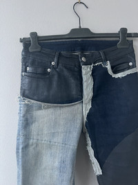 Jeans from Rick’s SS19 collection in the Tyrone skinny cut, composed of a number of different denims spliced together. A true grail piece. Tagged a 29, fits with stretch. In used condition with general wear. Feel free to message me with any questions or an offer. Thank you!