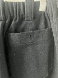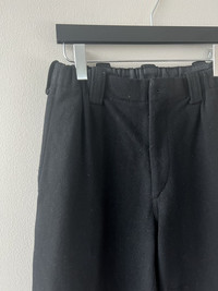 Tapered trousers from Yohji’s Y’s for Men line in a black wool fabric with an elastic waist. Tagged a 4, fit anywhere from 30-34 due to elastic waist. In used condition with general wear. Missing a button, easy fix. Feel free to message me with any questions or an offer. Thank you!