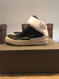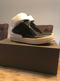 These are one of the rarest high top sneakers RICK ever made. It’s a showroom sample and a mixture of the island dunks and the famous geobaskets. It’s a one of a kind size 44EU. In nearly perfect condition, only some signs of wear on the bottom of the sole. This is your chance to own a unique pair of RICK’s. Comes with replacement rick box and a dustbag of your choice got tons. Size 44EU for more info please check my bio