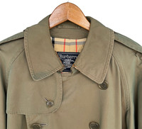 **READ DESCRIPTION BEFORE PURCHASE** **NO RETURN/REFUND AFTER PURCHASE** **OFFER ACCEPTED** Vintage Burberry Trenchcoat Iridescent Used condition Made in Japan Tag : Burberry Material : Cotton Size : Medium Measurement : Armpit to armpit : 22.5" Inches Top to bottom : 42.5" Inches All shipping only use DHL EXPRESS. No national post for a while. Make a good offer for each item. Thank you!