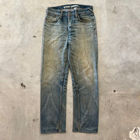 **READ DESCRIPTION BEFORE PURCHASE** **NO RETURN/REFUND AFTER PURCHASE** **OFFER ACCEPTED** Vintage Evisu Genes Non Selvedge Denim Well worn (Ref picture) Made in China Tag : Evisu Genes Material : Cotton Measurement : Waist : 31 Top to bottom : 41.5" Inches All shipping only use DHL EXPRESS. No national post for a while. Make a good offer for each item. Thank you!