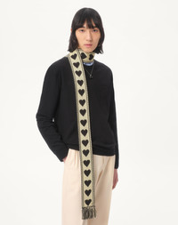 Antibes cotton scarf with fringes. - Composition: 100% cotton - Jacquard construction with heart pattern - Fringed detail - Dimensions: 7x180 cm / 2.8x70.8 in. - Dry clean - Made in Italy Product code: 7Y2EN00BJYN_QT3