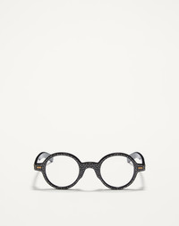 With its rounded silhouette, this model is embellished with couture details. On the front, a delicate crystal decoration adds light and personality, while the thin, linear temples are inspired by vintage models and enhanced by decorative rivets and the unmistakable Valentino logo, the Maison's hallmark. A model that combines style and versatility. FEATURES - Lens base: 4 Lens category: n/a Lens material: nylon - UV transmittance: n/a - Suitable for prescription - Packaging: Recycled opaque black paper/FSC box with inserts in black paper bags to include product accessories, recycled microfiber lens cloth, and case. - Leather case: black case and shiny recycled leather strap with black metal VLogo - Unisex eyeglasses - Made in Italy DIMENSIONS - Temple length: 14.5 cm / 5.7 in. - Total frame width: 14 cm/ 5.5 in. - Lens width: 4.3 cm / 1.7 in. - Lens height: 4.3 cm / 1.7 in. - Bridge: 2.4 cm / 0.9 in. Product code: Z530VLX185B_7V2