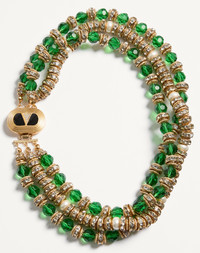 Coeur Royal Necklace in Metal, Enamel, Briole Glass, Pearls and Crystals - Gold-tone finish - Ovalette metal closure with rounded enamel, Swarovski® crystal pave and VLogo detail - Multi strands of briole' glass spheres, crystal rondelles and glass beads - Total length: 40 cm / 15.7 in. - Box clasp - Made in Italy Product code: 6W0J0Z40XCD_CQE