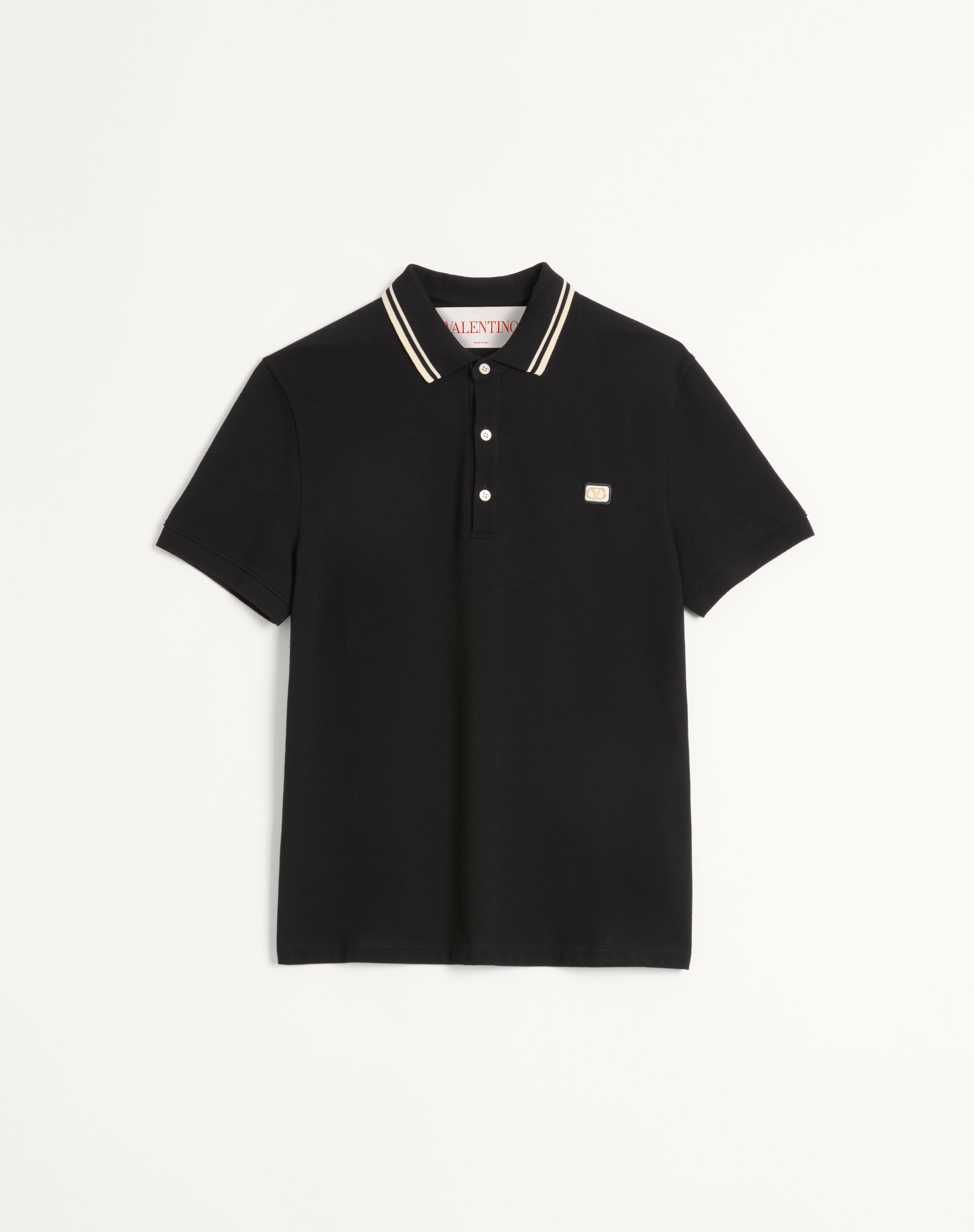 Valentino cotton pique polo shirt with VLogo patch - Regular fit - VLogo Signature patch on left breast as worn - Composition: 100% Cotton - Length: 70 cm / 27.6 in. from the back of the neck in a size M - The model is 187 cm / 6'1" tall and wears a size M - Made in Italy Product code: 6V3MH01KAQK_0NO