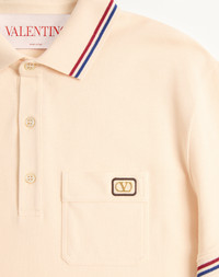 Valentino cotton pique polo shirt with VLogo patch - Regular fit - VLogo Signature patch on left breast as worn - Composition: 100% Cotton - Length: 70 cm / 27.6 in. from the back of the neck in a size M - The model is 187 cm / 6'1" tall and wears a size M - Made in Italy Product code: 6V3MH01KAQJ_581