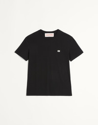 Valentino cotton T-shirt with VLogo patch - Regular fit - VLogo Signature patch on left breast as worn - Composition: 100% Cotton - Length: 70 cm / 27.6 in. from the back of the neck in a size M - The model is 187 cm / 6'1" tall and wears a size M - Made in Italy The look of the model is completed by a Valentino Garavani Nellcote Bag and Valentino Garavani Pat Shoes. Product code: 6V3MG10VAQ8_0NO