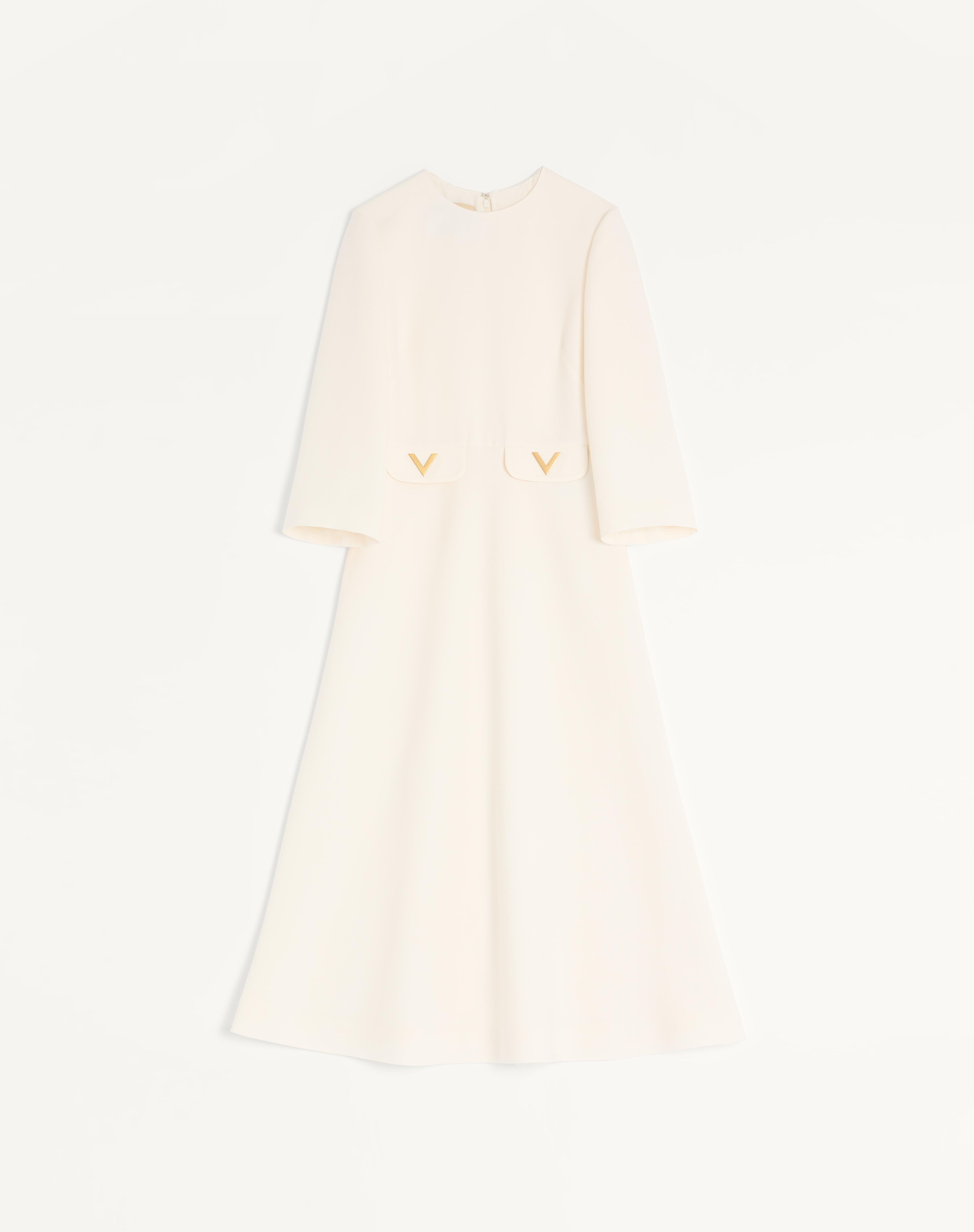 Crepe Couture Midi Dress - V Gold detail - Rear zip closure with hook-and-eye fastening - Crepe Couture (65% Virgin Wool, 35% Silk) - Habotai lining (100% Silk) - Length: 126 cm / 49.6 in. from the shoulders in an Italian size 40 - The model is 176 cm / 5'9" tall and wears an Italian size 40 - Made in Italy The look of the model is completed by a Valentino Garavani Vain Bag and Valentino Garavani Adamantine Shoes. Product code: 7B3VAEU91CF_A03