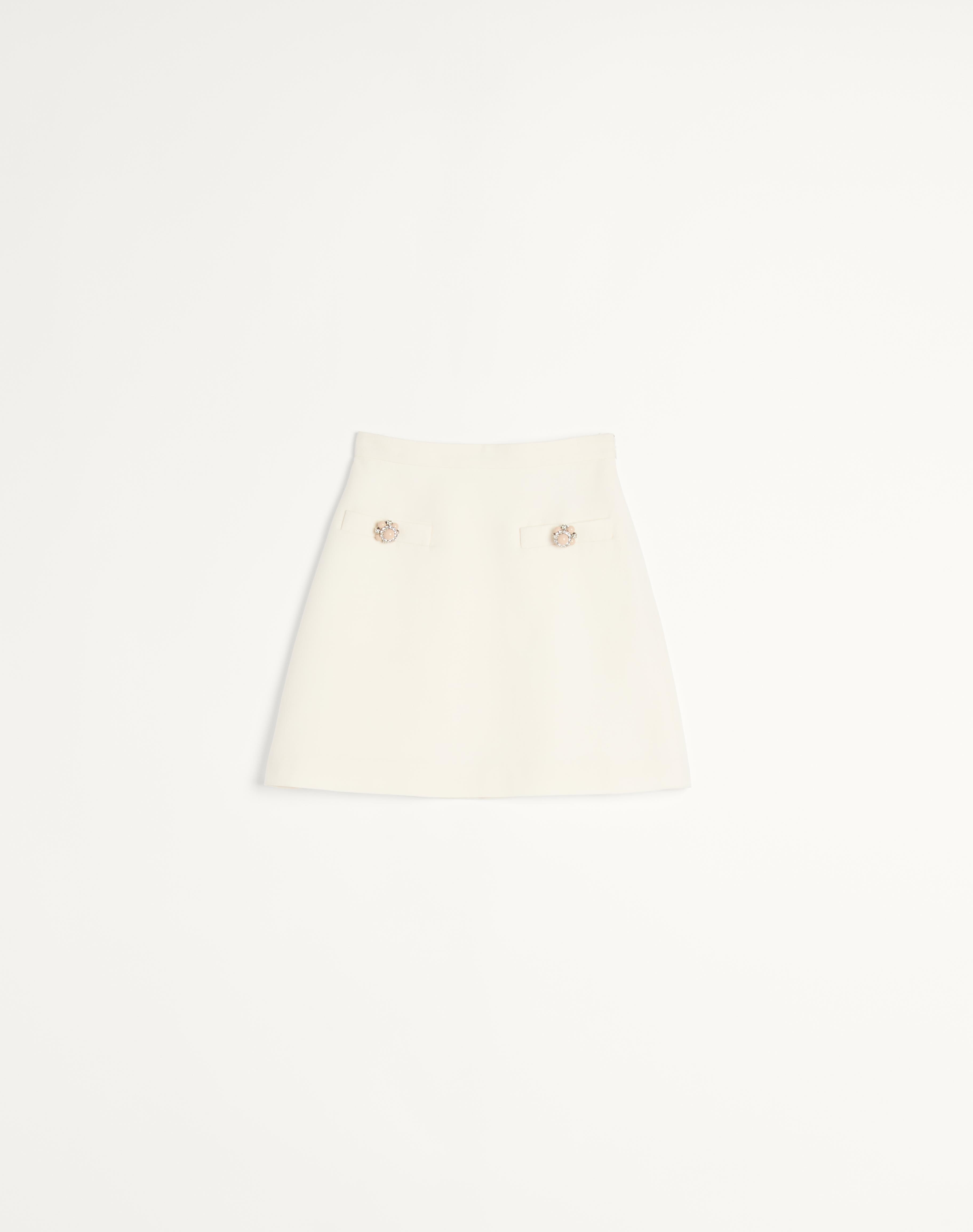 Crepe Couture skirt - Jewel button detail on pockets - Crepe Couture (65% Virgin Wool, 35% Silk) - Jacquard lining with diagonal stripe pattern with flowers and VLogo (75% Acetate, 25% Silk) - Length: 85 cm / 33.5 in from the waist in an Italian size 40 - The model is 176 cm / 5'9" tall and wears an Italian size 40 - Made in Italy The look of the model is completed by a Valentino Garavani Quiltie 67 Bag and Valentino Garavani Bowow Shoes. Product code: 6B3RACH71CF_A03