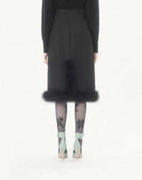 Crepe Couture skirt with feather boa hem - Back slit - Rear zipper and hook-and-eye closure - Crepe Couture (65% Virgin Wool, 35% Silk) - Habotai lining (100% Silk) - Length: 67 cm / 26.4 in. from the waist in an Italian size 40 - The model is 176 cm / 5'9" tall and wears an Italian size 40 - Made in Italy Product code: 8B3RAEJ11CF_0NO