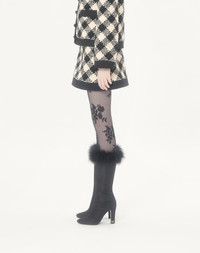 Damier Tweed skirt with Crepe Couture trim - Side zipper with hook-and-eye closure - Damier Tweed (44% Cotton, 18% Wool, 16% Viscose, 12% Acrylic, 8% Polyamide, 2% Mohair Wool) - Habotai floral lining (100% Silk) - Length: 44 cm / 17.3 in. from the waist in an Italian size 40 - The model is 176 cm / 5'9" tall and wears an Italian size 40 - Made in Italy Product code: 8B3RAEH89WK_R8E