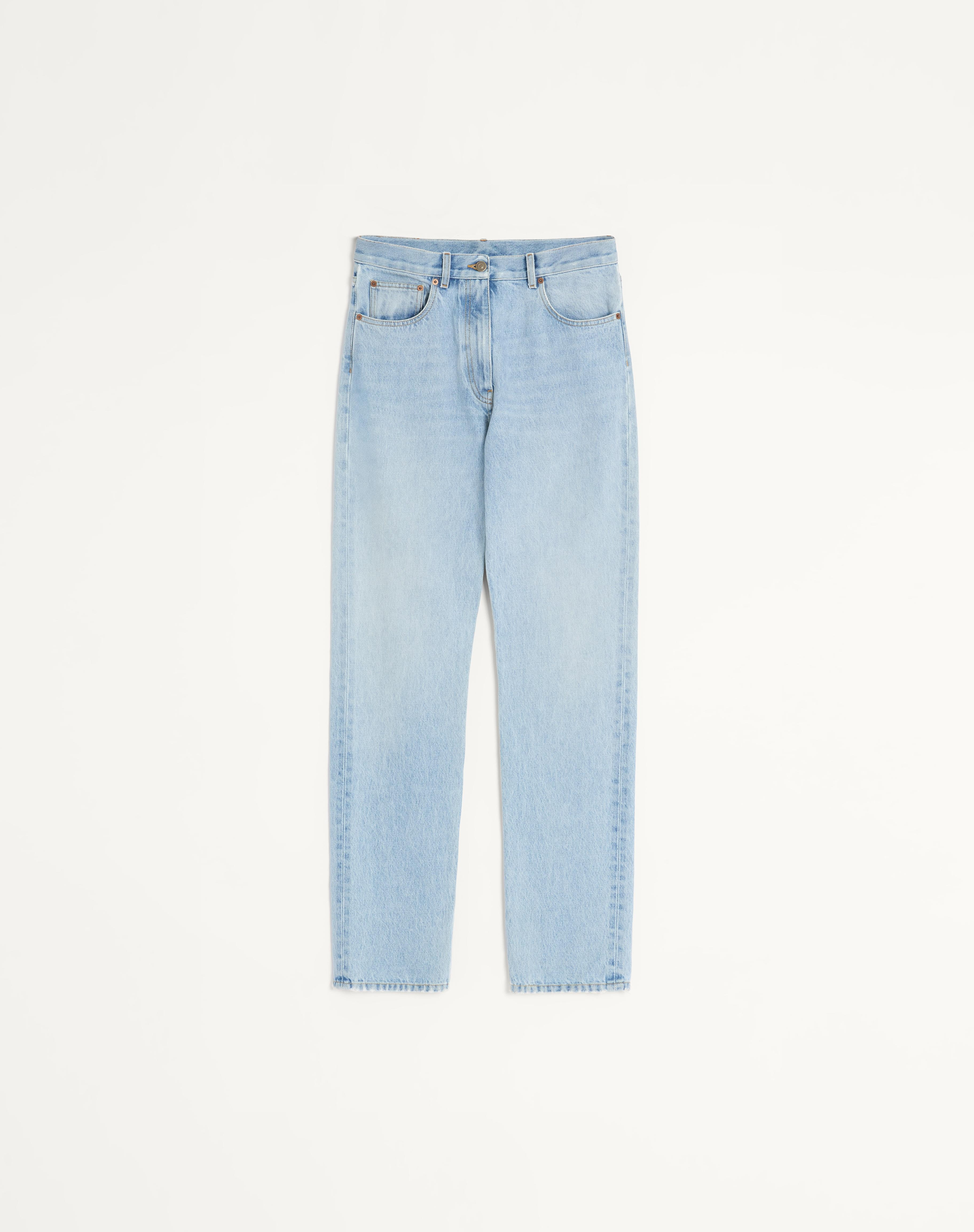 Denim pants - Loose fit - Chez Valentino patch on the back - Front closure with button and zipper - Denim (100% Cotton) - Unlined - Length: 113 cm / 44.5 in. from the waist in an Italian size 40 - Leg opening: 20 cm / 7.8 in. in an Italian size 40 - The model is 176 cm / 5'9" tall and wears an Italian size 40 - Made in Italy The look of the model is completed by a Valentino Garavani Panthea Bag and Valentino Garavani Valentino Garavani And Vans Shoes. Product code: 7B0DD20T9SF_508