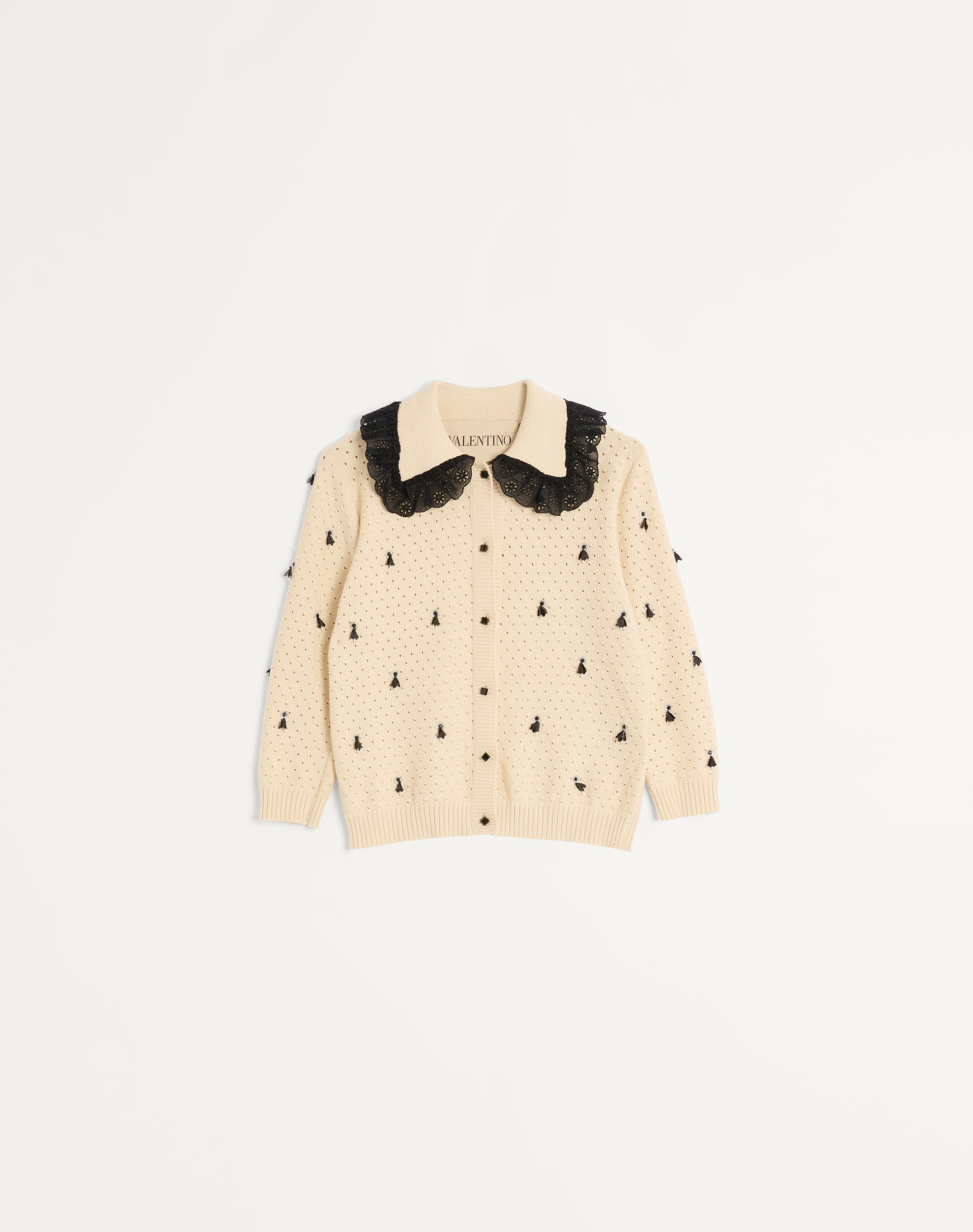 Embroidered Cotton Cardigan - Sangallo lace detail on the collar - Front button closure - Cotton (100% Cotton) - Length: 52 cm / 20.5 in. from the shoulders in an Italian size S - The model is 176 cm / 5'9" tall and wears an Italian size S - Made in Italy The look of the model is completed by a Valentino Garavani Le Chat de La Maison Bag and Valentino Garavani Hi Dolly Shoes. Product code: 7B3KA12H9EE_R8E