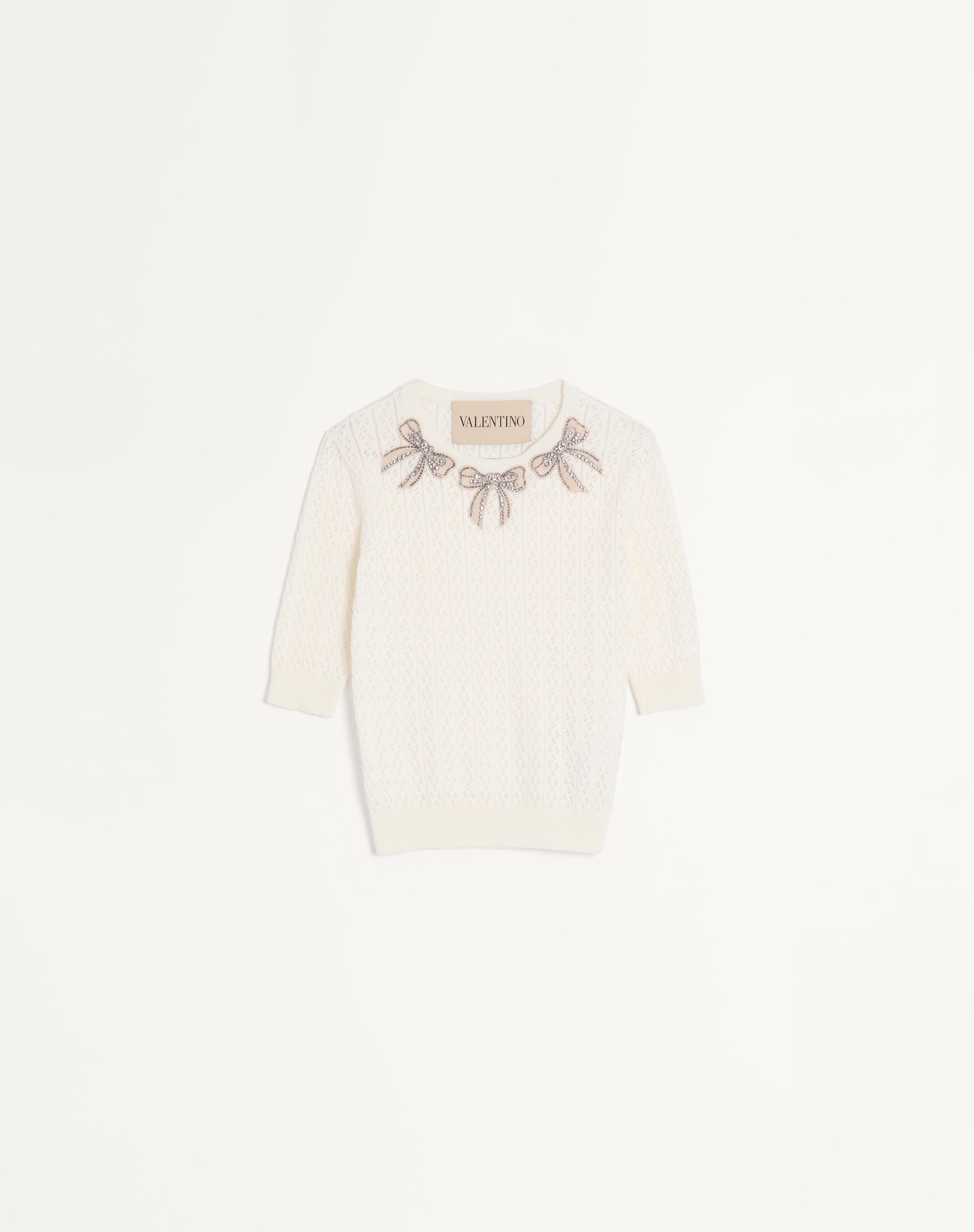 Cotton top with embroidered bows - Cotton (100% Cotton) - Length: 56 cm / 22 in. from the shoulders in an Italian size S - The model is 176 cm / 5'9" tall and wears an Italian size S - Made in Italy The look of the model is completed by a Valentino Garavani Bag and Valentino Garavani Bowow Shoes. Product code: 7B3KC66C9EG_A03