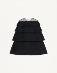 Organza Cape with all-over pages embroidery and faille bow - Front hook-and-eye fastening - Organza (100% Silk) - Length: 73.5 cm / 28.9 in from the shoulders in an Italian size 40 - The model is 176 cm / 5'9" in tall and wears an Italian size 40 - Made in Italy The look of the model is completed by Valentino Garavani Shoes. Product code: 8B0CG5201C8_0NO